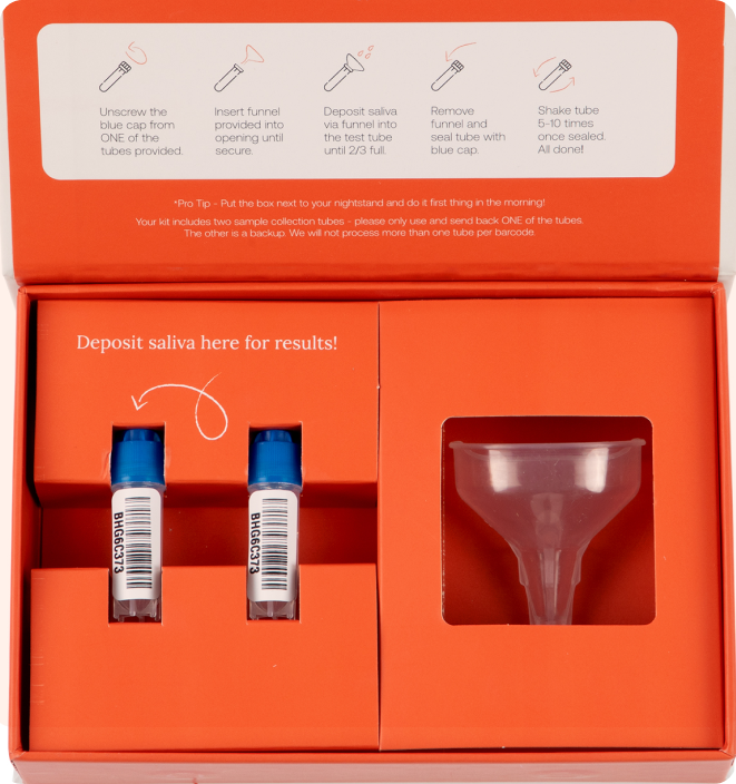 • Collection Kit: collection tube and funnel for taking your saliva sample